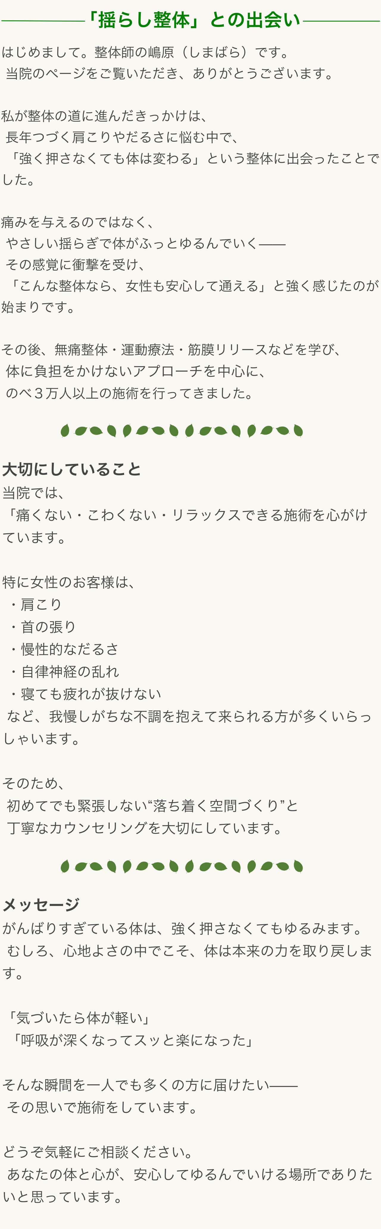 広島市南区の整体院|痛みを取る専門家。肩こり、腰痛、膝痛、関節痛、更年期、産前産後 あなたのお悩み聞かせて下さい