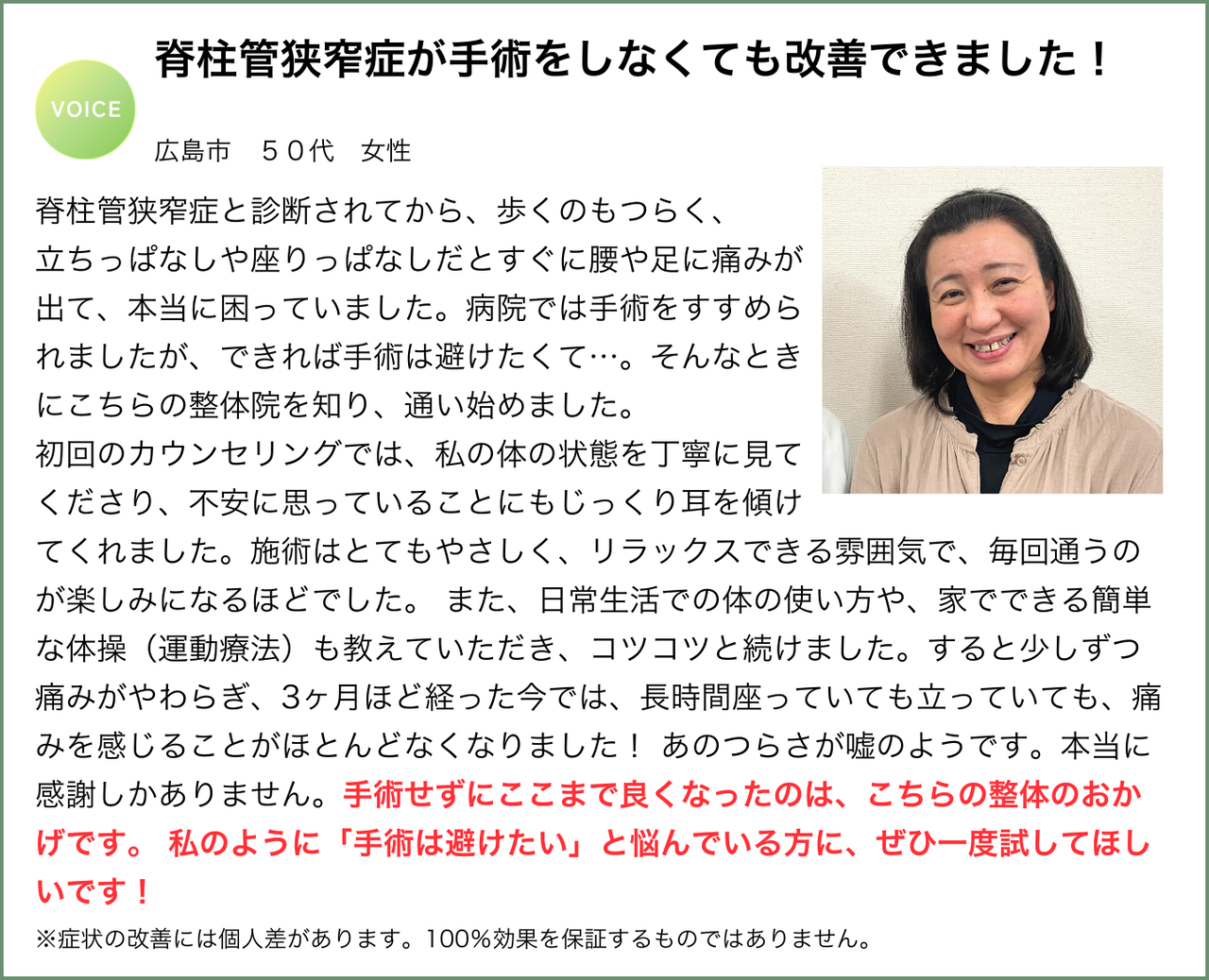 改善されるキッカケを早くつかむために来店してください。早く!必ず!