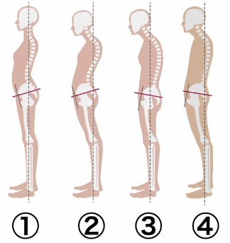 ①と②は「反り腰」、③と④は「受け腰」と呼ばれる姿勢です。