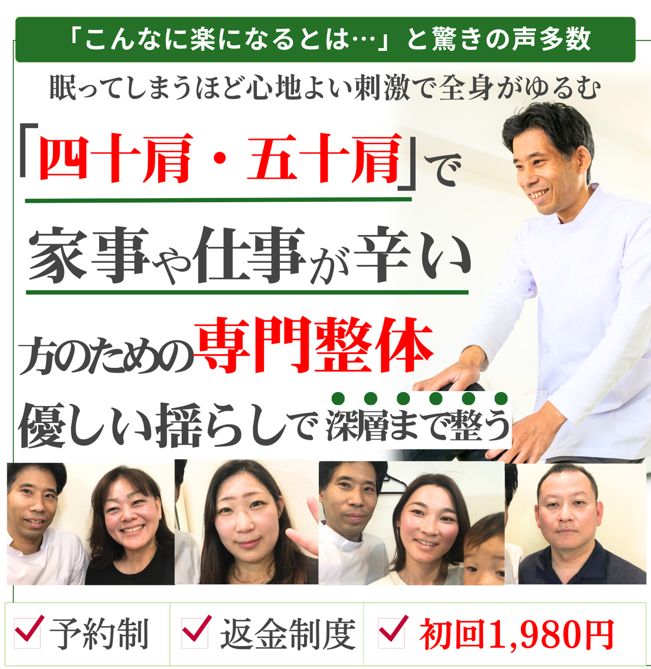 四十肩・五十肩の痛みで悩んでいる方にこそ、ぜひ知っていただきたい整体です。